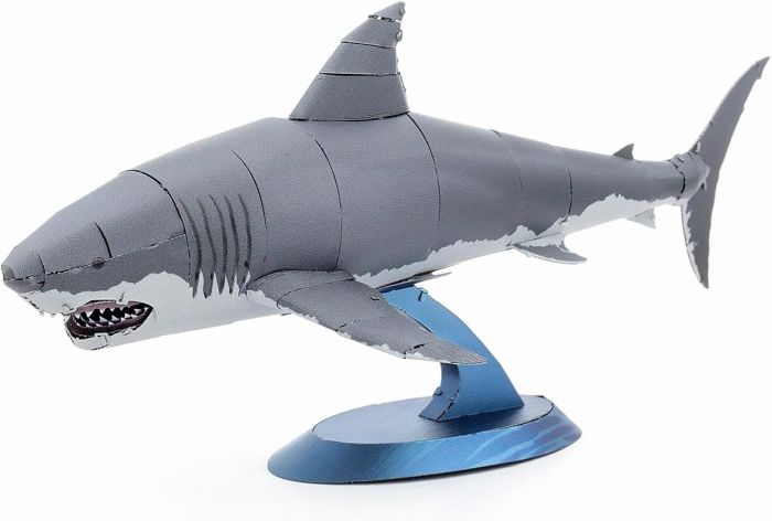 The Great White Shark metal modelling kit includes 2 metal sheets containing parts of the shark. Parts can be removed from the metal sheet by hand, however a pair of wire cutters is recommended. In assembling the 3D model, tweezers make an ideal tool for bending and twisting connection tabs.