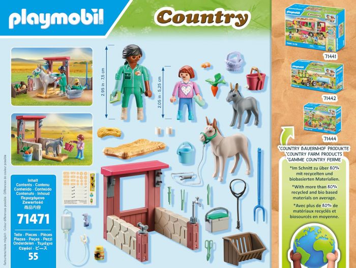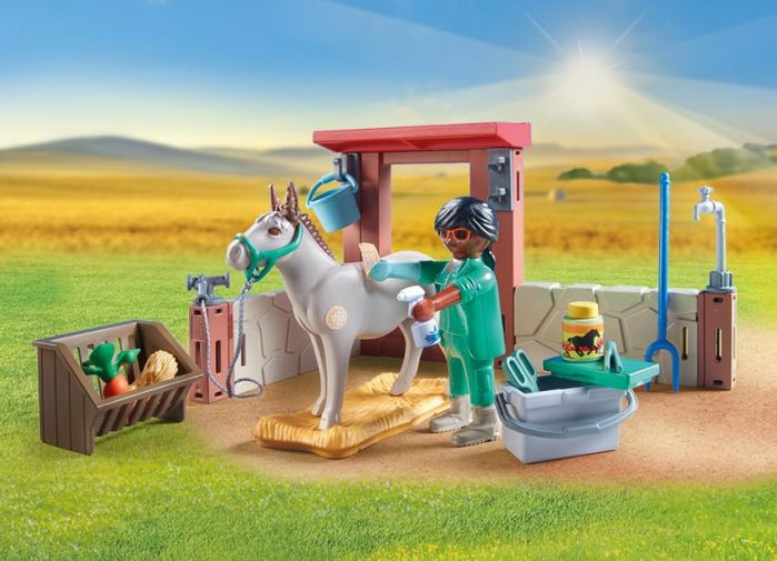 Aid the veterinarian in caring for the donkeys with the Playmobil Starter Pack Farmyard Veterinarian. The doctor gently examines the donkey foal under the watchful eyes of the mother. Fortunately, the sick animal can be helped quickly. Next in line is the little hamster. The veterinarian always has a lot to do.