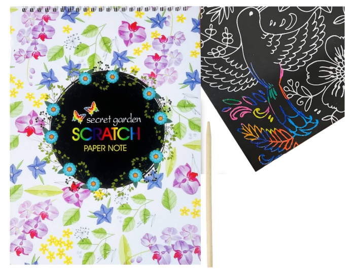 Create eye-catching artworks with this A4-sized scratch art sketch pad. The sketch pad features 10 scratch art pages, each page displaying a different garden-inspired design.